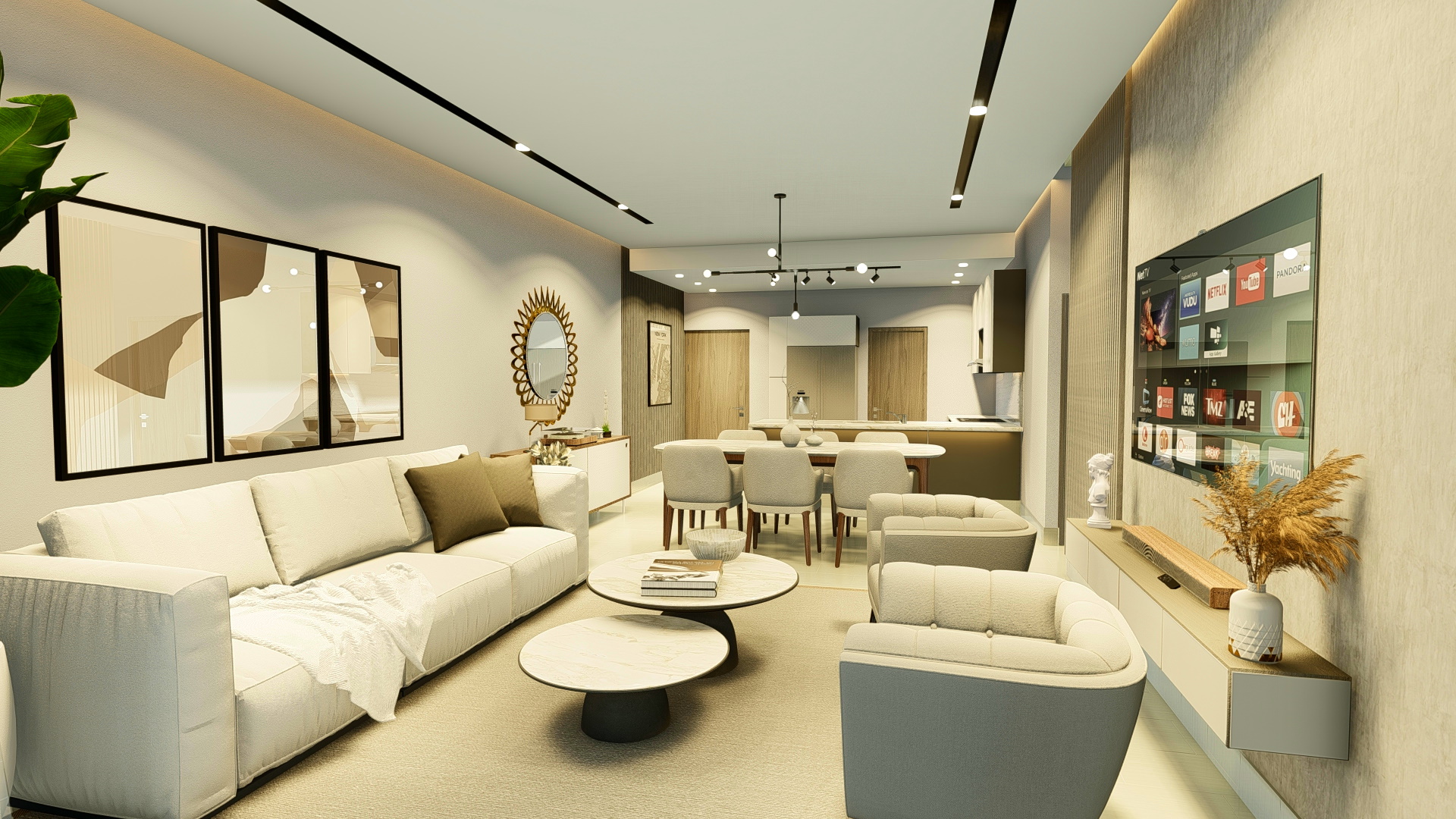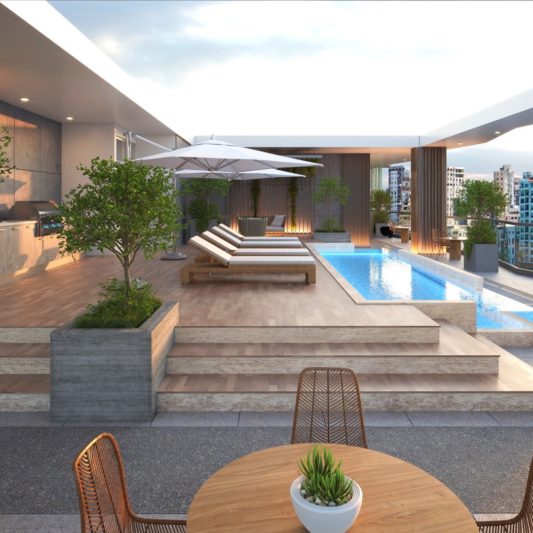 Apartamentos desde 59 m² a 115 m² con amplios balcones, distribución inteligente de espacios interiores y altura de piso a techo terminado de 3 metros. ¿Gustas recorrerlos en PDF?