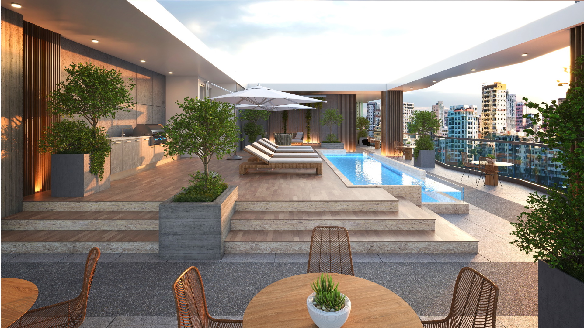 vestíbulo con llegada vehicular, rooftop en el nivel 11 con terrazas,